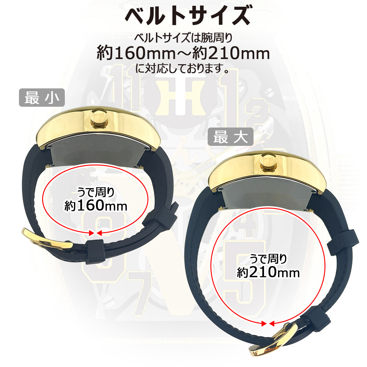 | 腕周り | 最小約160~最大約210mm |