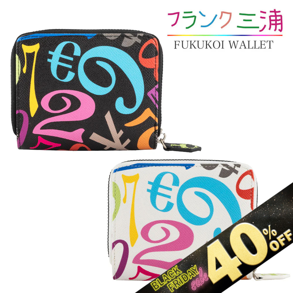 『40%OFF BLACK FRIDAY SALE』 [フランク三浦] 奇跡の財布 ラウンドファスナー 二つ折り メンズ レディース レインボーブラック レインボーホワイト FMS23